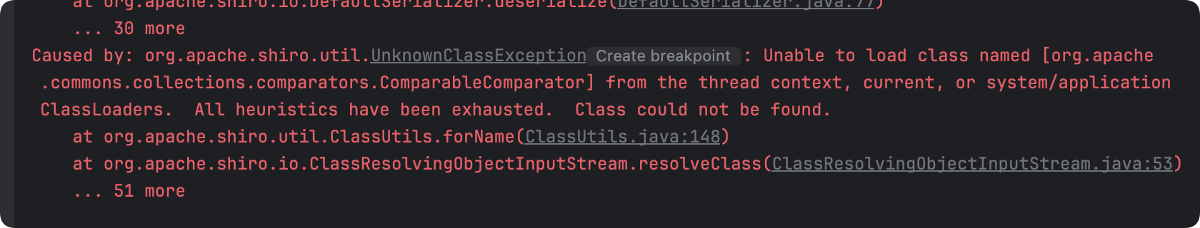 发送生成的rememberMe字段后仍然报错,并且也是找不到CC依赖问题:
